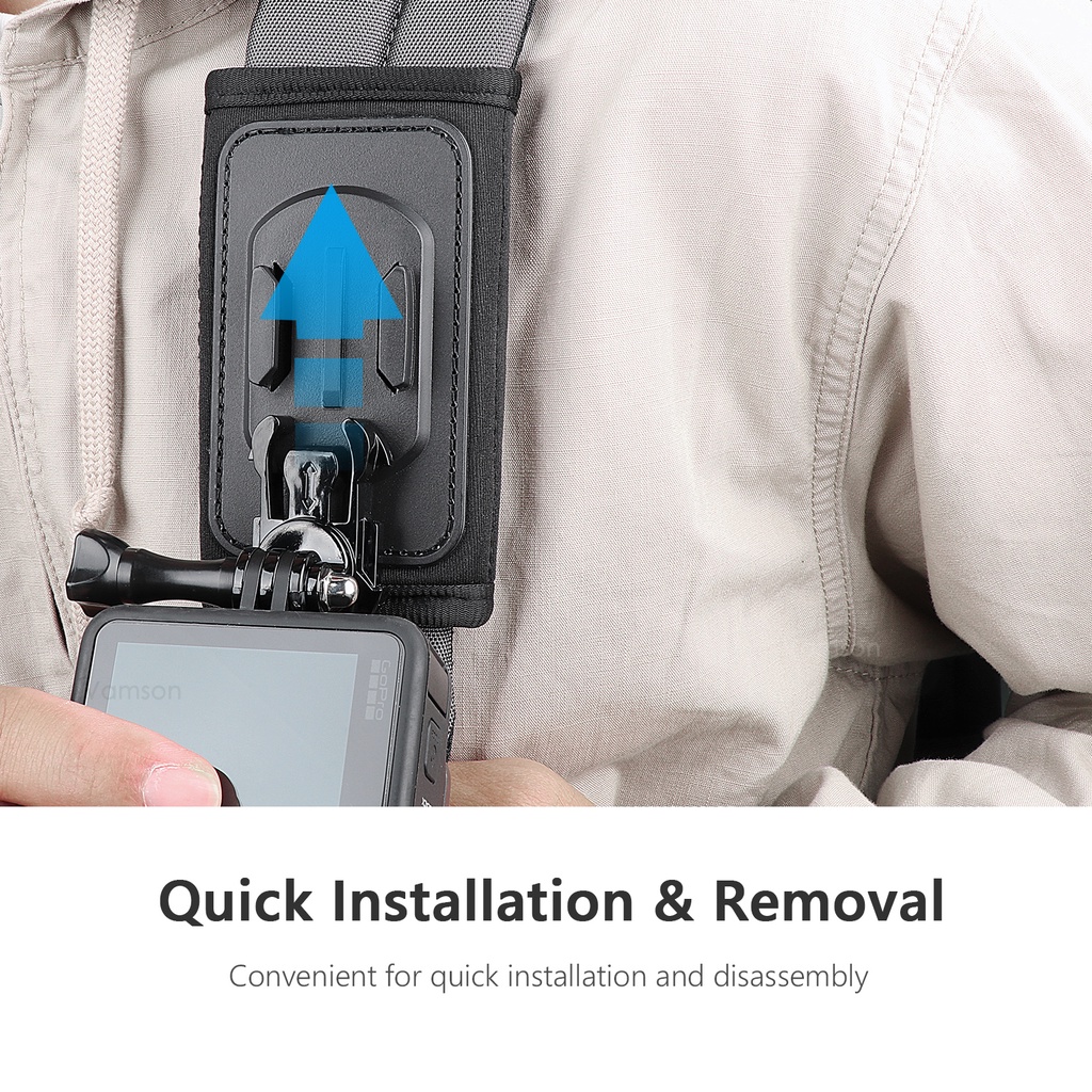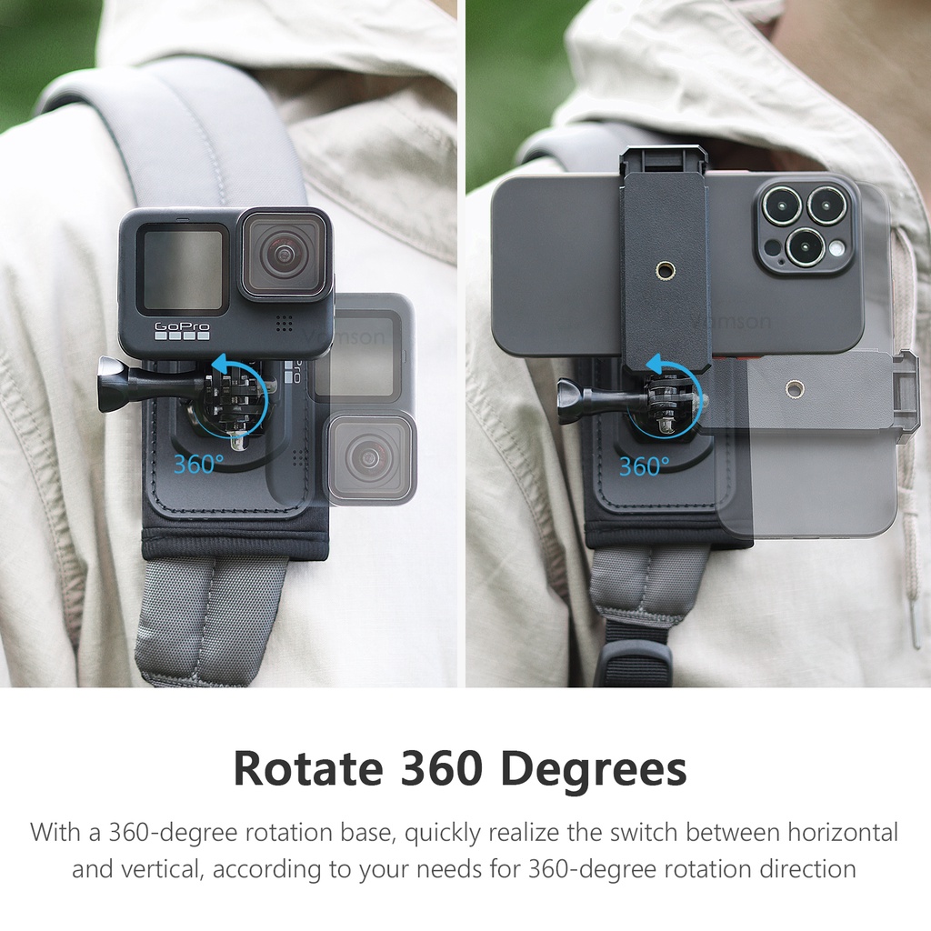 Vamson 360 Degree Rotary Backpack Clip Chest Shoulder Clamp Mount for One X2 X3 Dji Action 3/Action 4 GoPro Hero 12 11 10 9