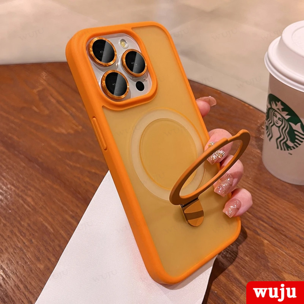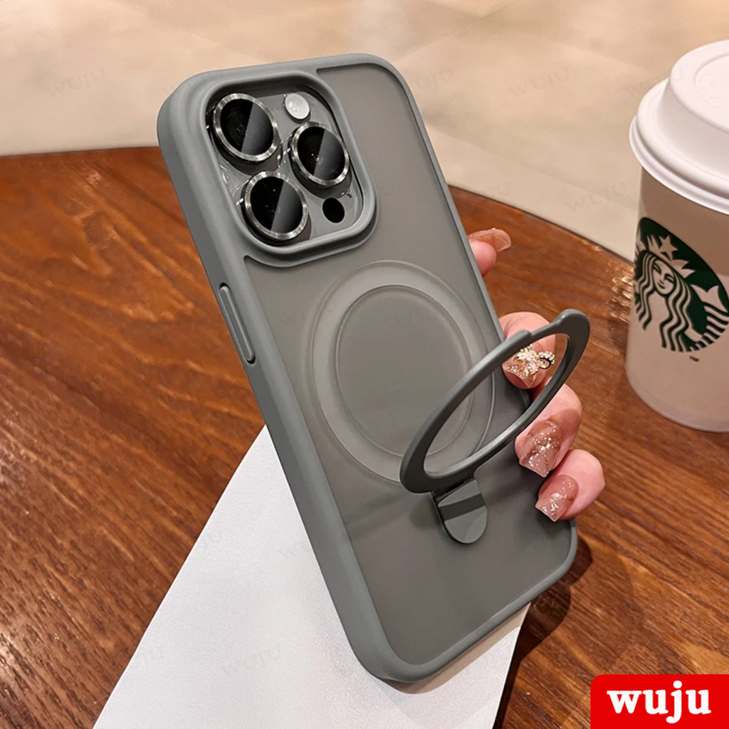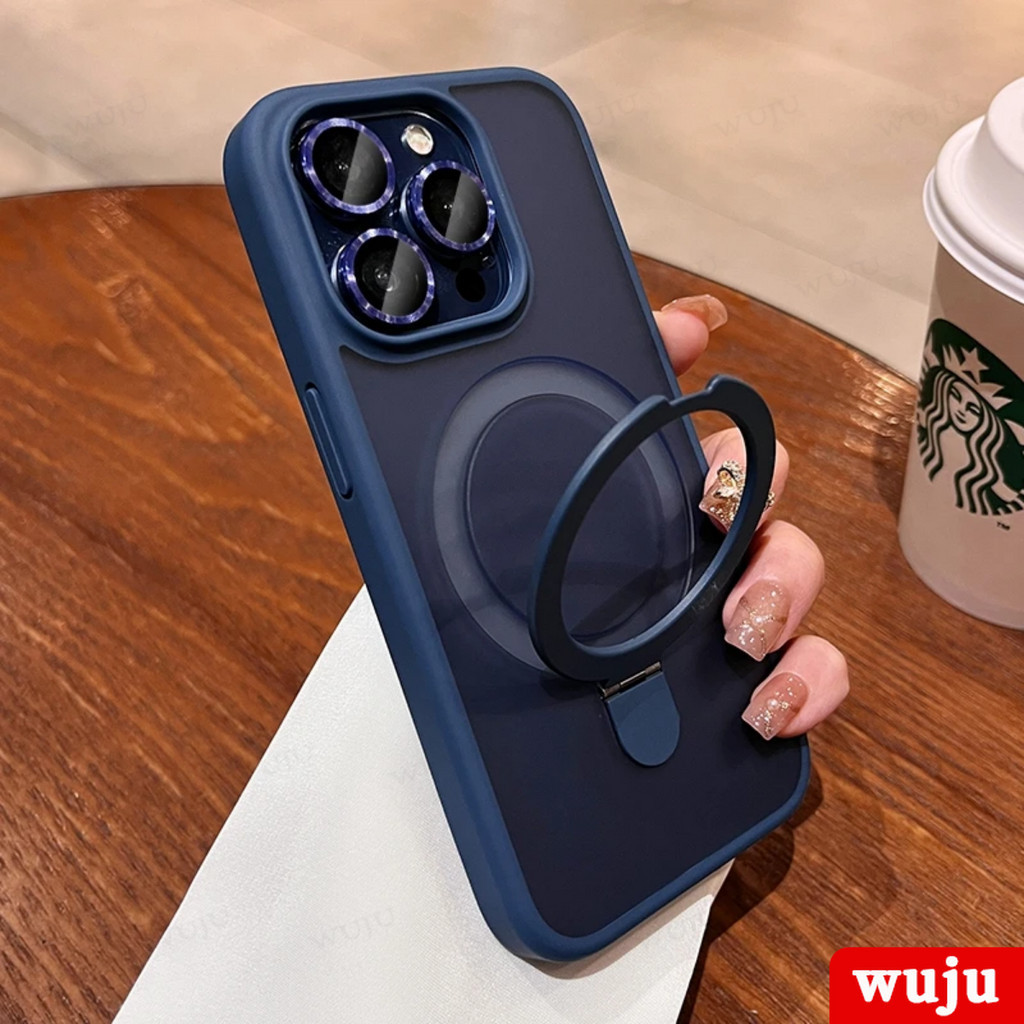 WUJU Luxury Matte Magnetic Holder Wireless Charging Phone Case Compatible For iPhone 11 12 13 14 15 Pro Max Plus